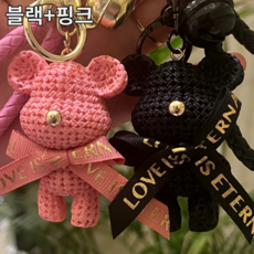 어베일텐비 1+1곰돌이 키링 블랙 화이트 핑크 브라운, 1+1 블랙+핑크
